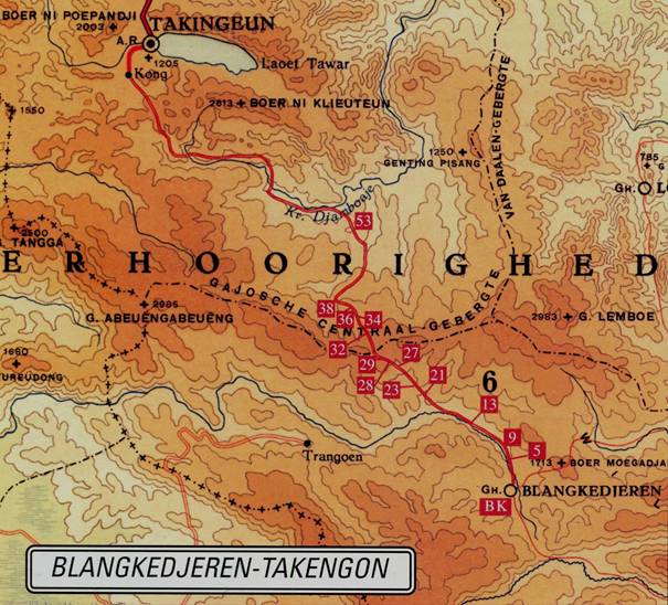 5, 9, …., 53: werkkampen langs de Atjeh-weg (getallen